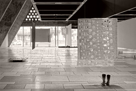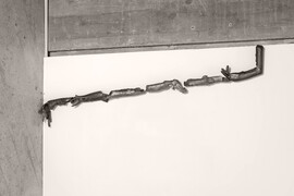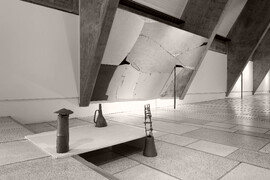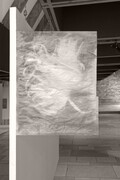 « L’exposition prend comme point de départ l’architecture du centre d’art. Dans cet espace au style brutaliste et aux dimensions imposantes, je crée un parcours qui s’oppose à la verticalité et à la rudesse du béton en proposant une exposition instable et sensible.