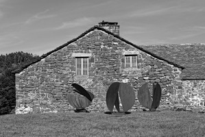 Né en 1909 au Puley, village de Saône-et-Loire, Maxime Descombin commence sa carrière comme tailleur de pierre et réalise des décorations de bâtiments aussi bien que des monuments funéraires. Il s’installe ensuite à Mâcon, où il suit les cours de dessin de la ville au milieu des années trente. Malgré cela, Maxime Descombin est un autodidacte : un artiste qui se forme au contact d’autres artistes, dont le sculpteur Désiré Mathivet au Villars, par lequel il rencontre Antoine de Saint-Exupéry. De 1947 à 1949, Maxime Descombin passe trois années en sanatorium pendant lesquelles il ne peut pas créer, mais approfondit sa réflexion sur la sculpture. Le principal apport de l’artiste à cet art est la sérialité. Les sculptures qui voient le jour après cette période de gestation sont composées à partir d’une forme simple que le sculpteur fait varier à l’intérieur d’une série par des procédés d’opposition, d’inversion, de division, etc. Le langage abstrait de ses sculptures, qui se dessine dès cette époque, est une réflexion sur l’universalité du signe. C’est également par souci d’universalité que l’artiste privilégie les matériaux industriels qui sont ceux de son époque, et la monumentalité.