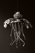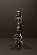 Brought together, these figures – real or imagined – intertwine with Dogon2, Fang3, and Bassa4 cosmogonies, as well as diasporic myths born of exile. A teeming maquis as much as a fantasized biotope, the exhibition space shelters its own speculative mythology, populated with chimeric figures and biological entities. These latter, chosen for their structural or biological capacities, embody a discreet strength: that of building in the shadows while endlessly regenerating themselves. Interlaced, the whole rubs and resonates to produce new images, fugitives in the making. What’s at stake is a poetics of flight — not as abandonment, but as strategy, as the science of escape and displacement. Clandestine, aquatic, shifting, fiction here is resistance.