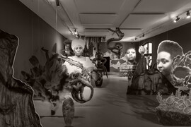 A world resurfaces, fragment by fragment, in the slow rhythm of reconfiguring forms. For her most expansive exhibition to date, Josèfa Ntjam transforms the 1200 m² of the Institut d’art contemporain and the display windows of the Gare Part-Dieu metro station into a sensory, political, and mythological drift. A terrain where everything wavers: textures, voices, memories... Here, form follows the fracture, and legend beats to the rhythm of an underground heart.