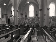 Vue de l'exposition Alain Pouillet - Regards Fertiles dans l'Église de Saint-Colombe sur Gand (Loire) du 30 septembre au 30 novembre 2017
