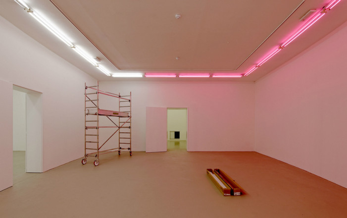 Jason Dodge, Rose light to white light to rose light over and over by hand.