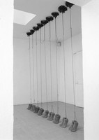 Son travail, essentiellement constitué de sculptures et d’installations, s’appuie sur des références explicites à l’histoire de l’art qu’il détourne et déconstruit, que ce soit à travers leur sujet ou leur processus de fabrication. Ainsi les premières œuvres de Frédéric Meynier font systématiquement référence à l’autoportrait, un genre classique qu’il traite sur le mode plus général de la construction de l’identité. « Les grands maîtres de la peinture ont laissé une partie d’eux-mêmes, explique-t-il, ils se sont immortalisés au regard des siècles futurs en réalisant des autoportraits. À l’inverse de ces peintres, j’ai fait mourir mon autoportrait et je reste en vie1 ». Ces autoportraits prennent généralement la forme de moulages du visage de l’artiste, semblables à des masques mortuaires de cire ou de plâtre, qui sont tantôt répétés et alignés de manière quasi obsessionnelle (Autoportrait mur de boîtes crâniennes, 1991), tantôt disparaissent en fondant comme des bougies (Autoportrait cierges, 1991).