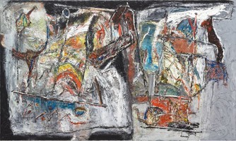 1947 marque un tournant dans son évolution picturale, quant à l’invention d’une forme de figuration ironique et étrange. Sans égard pour l’académisme de l’art, il associe dans ses peintures des matériaux insolites comme le goudron, le papier, le carton déchiré et autres techniques diverses.