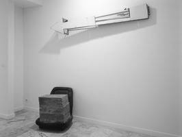 La pratique de Richard Baquié est celle d’un bricoleur subtil ; de ses installations et assemblages d’objets et d’engins, récupérés dans les décharges de sa ville natale de Marseille, se dégage une profonde mélancolie. Entre 1980 et 1990, Richard Baquié produit la quasi-totalité de son travail, l’artiste commençant à se faire connaître aux débuts de cette décennie par une série de performances. La plus célèbre, Opération Rhinocerus (mars 1983), basée sur l’histoire d’un célèbre rhinocéros offert, au XVIe siècle, au roi du Portugal, consistait donc à faire voyager sur une embarcation un rhinocéros fait de polyester jusqu’au phare du Planier, au large de Marseille. À la suite de cela, il élabore ce qui constitue la partie la plus emblématique de son travail : des sculptures ou installations nées de l’assemblage de rebuts industriels. Cette pratique a été qualifiée par l’artiste, et non sans humour, de « sculpture de série B » ou encore de « garagisme ». Fenêtre de compartiment de train (Autrefois il prenait souvent le train pour travestir son inquiétude en lassitude, 1984), carcasses de voitures (Amore mio, 1985) ou encore hélices d’avion – autant d’objets renvoyant au mouvement, au déplacement, à la motricité – composent son vocabulaire esthétique. À ses matériaux issus de véhicules, Richard Baquié intègre des éléments extérieurs à l’objet dont les dynamiques renforcent l’interaction de l’espace et du temps : l’eau circule en continu et change d’état, les déplacements d’air occupent l’espace, les sons figurent un mouvement physique…