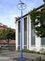 Elle s’apparente au fonctionnement d’une girouette érigée sur un mât d’acier qui porte les lettres d’acier "Col Bleu" sont associées aux abréviations des quatre points cardinaux avec une flèche fixe pointant en direction de la Montagne Ardéchoise. En dégradé de bleu jusqu’au bleu de chauffe, les quatre éléments (ou girouettes) de Col Bleu sont disséminés tel un jeu de piste dans la ville en résonance avec l'Ardèche. Le titre Col Bleu s’inspirant d’un col ardéchois – le Col de Bourlatier – et de l’exode des populations ardéchoises vers la ville comme celle de Villeurbanne, à la recherche d’une nouvelle vie, en cols bleus.Cette œuvre est issue du programme ex situ de l’IAC Un territoire en trois temps en Auvergne-Rhône-Alpes pour lequel Maxime Lamarche a été invité en résidence sur la Montagne Ardéchoise en juin 2021. Il y a créé une sculpture/habitacle intitulée Refuge du col bleu, une première étape vers Col bleu.
